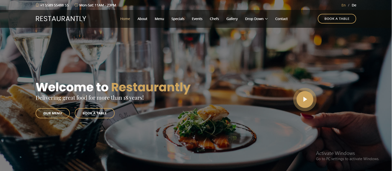 Restaurantly is a modern restaurant Bootstrap website template. It's elegantly designed in dark mode. Prefect for restaurants, bakery, cafe, Bar, catering service, food business, personal chef portfolio website and any other food related websites. It comes all the essential features and sections to create a stunning website for your restaurant.